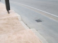Non contenti dello scempio urbanistico e d’aver, ancora una volta, eliminato del verde urbano, qualcuno è stato anche capace di fare lo scivolo per i disabili esattamente davanti alla grata di una caditoia, così adesso un disabile in carrozzina dovrà effettuare uno slalom per non rimanere incastrato con le ruote nella grata. Ma è mai possibile?