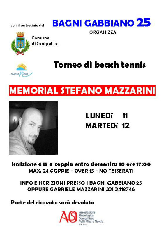 Un Torneo di Beach tennis in memoria di Stefano Mazzarini l’ex titolare dei Bagni 14 Village scomparso lo scorso 7 novembre. L’evento, patrocinato dal Comune di Senigallia e pubblicizzato anche dall’associazione Riviera Nord di cui Stefano è stato presidente e fondatore, si svolgerà l’11 e 12 agosto.