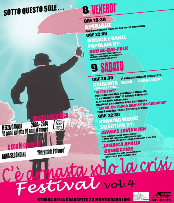Sotto questo sole … torna per la quarta edizione il festival “C’è armasta solo la crisi”, organizzato dallo Spazio Autogestito Arvultùra e dalla Casa della Grancetta.