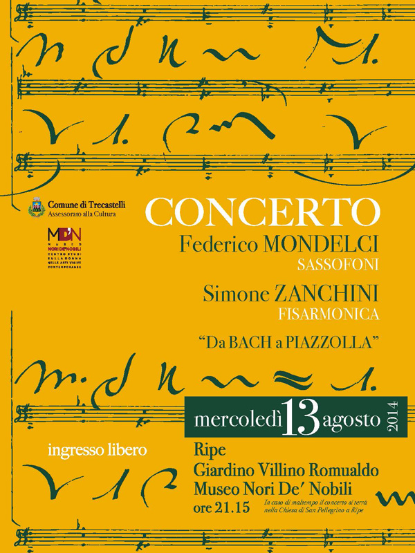 Uno straordinario appuntamento a Trecastelli; mercoledì 13 agosto alle ore 21.15 nel Giardino del Villino Romualdo a Ripe si terrà il Concerto “Da Bach a Piazzolla” con Federico Mondelci ai sassofoni e Simone Zanchini alla fisarmonica.