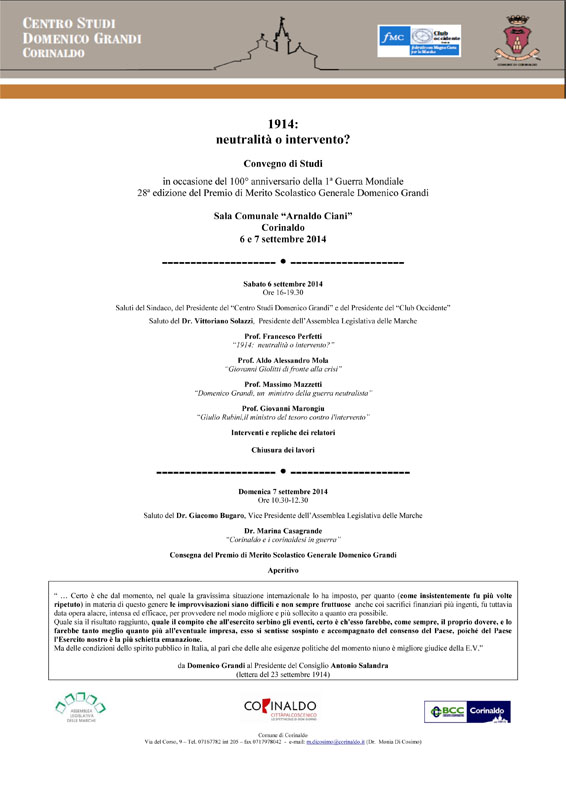 Tutto pronto, a Corinaldo, per la 28esima edizione del Premio di Merito Scolastico Generale “Domenico Grandi”, che avrà luogo sabato 6 e domenica 7 settembre all’interno del Palazzo Comunale.