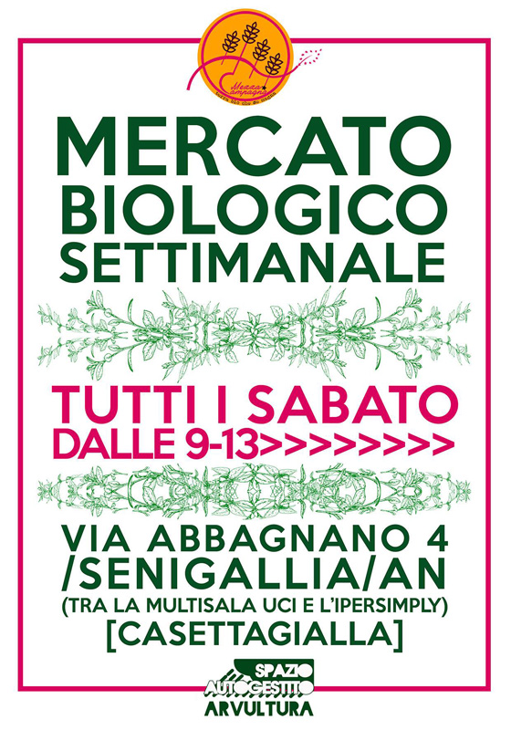 Dopo quasi due anni di attività torna l’appuntamento con il primo mercato contadino biologico di Senigallia, tutti i sabato mattina dalle 9 alle 13 presso lo Spazio Autogestito Arvultùra (via abbagnano 4, casetta gialla tra l’UCI Cinema e l’Ipersimply).
