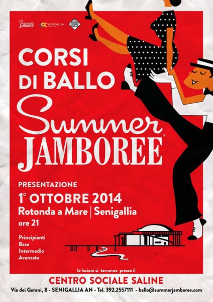 Iniziano i corsi di ballo (2014/2015) del “Summer Jamboree” a Senigallia! Condotti da docente professionisti e campioni internazionali di specialità: Enrico Conti, Francesca Baldini, Diana Romano, Marco Ginevri. I corsi del Summer Jamboree si terranno al Centro Sociale Saline di Senigallia.