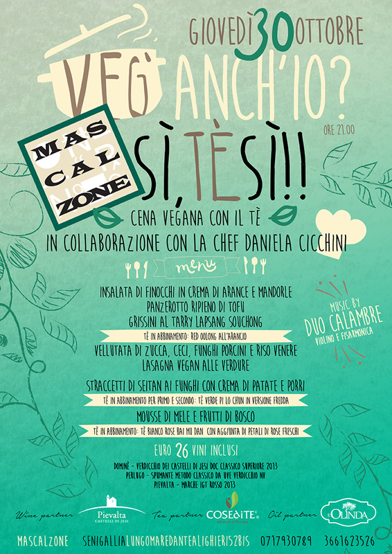 cena vegana con il 30 ottobre con il tè al Mascalzone