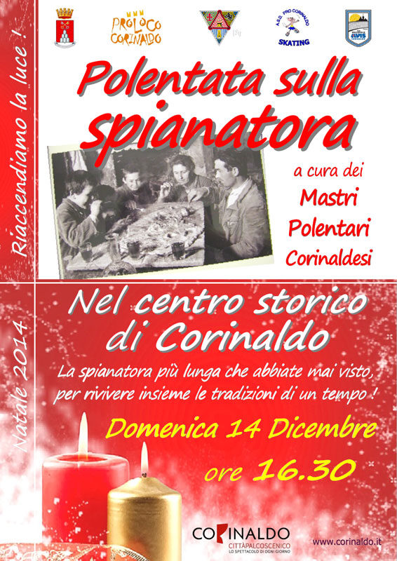 Un natale dal “sapore” tutto corinaldese, è proprio il caso di dirlo. La Pro Loco di Corinaldo, insieme all’associazione Pozzo della Polenta, l’Avis Pallavolo e la Pro-Corinaldo Skating, ha organizzato per domenica 14 dicembre alle ore 16.30 la tradizionale “Polentata sulla spianatora” lungo Via del Corso.