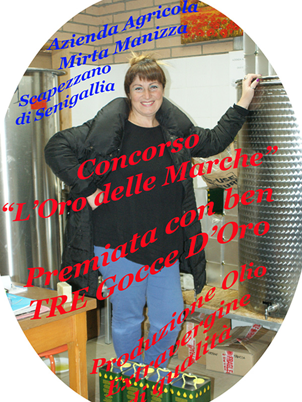 Mirta Manizza ha conquistato il terzo posto, infatti, nel concorso L’oro delle Marche e ottenuto la menzione di merito con ben tre “gocce d’oro” per la sua seppure piccola produzione di olio extravergine di oliva blend.