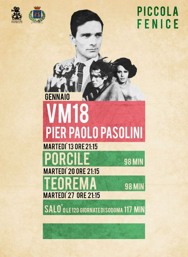 Le pellicole che saranno proiettate in tale rassegna, intitolata “Pier Paolo Pasolini VM18“, sono tra le opere più audaci, scomode e criticate del regista italiano che all’epoca furono censurate e denunciate: “Porcile“, “Teorema” e “Salò o le 120 giornate di Sodoma“.