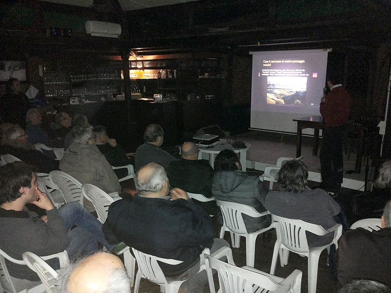 Carlo Ponzio, agronomo professionista, ha mostrato l’evoluzione del paesaggio agrario e delle tecniche agricole negli ultimi decenni, analizzandone le implicazioni sul tempo di corrivazione. Più che di evoluzione, secondo Ponzio, dovremmo parlare di una involuzione, che ha aumentato la fragilità del sistema produttivo agro-forestale collinare. Qui il dissesto idrogeologico è sinonimo di perdita di fertilità agronomica e quindi di produttività. Secondo Ponzio è necessaria una profonda revisione della tecnica colturale, con alcuni obiettivi in testa. Innanzitutto l’aumento della sostanza organica, una vera ricchezza per l’agricoltura ma anche una alleata sul fronte idrogeologico, dato che accresce la capacità del terreno di assorbire l’acqua. E poi la riduzione dell’erosione del suolo, una ecatombe che vale decine di tonnellate per ettaro di terreno agricolo perse ogni anno! Ponzio ha offerto diverse spunti, a titolo esemplificativo: l’importanza della copertura vegetale, la minima lavorazione del terreno e la rotazione colturale.