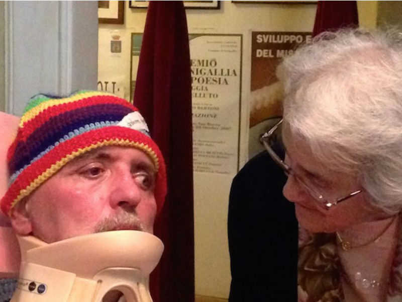 Circondato dai sui sostenitori, dai suoi amici più cari, e da tanti cittadini che con la loro presenza hanno voluto manifestargli solidarietà e vicinanza, nonostante le tante difficoltà, Massimo Fanelli stesso ha voluto presenziare all’iniziativa. Sua moglie Monica, insieme all’infaticabile Mina Welby ormai di casa e benvenuta nella nostra città, e con accanto il giornalista Stefano Pagliarini ad intervistarle, hanno dato il via ad uno splendido dibattito di approfondimento sul tema del “fine-vita”, sugli aspetti etici dell’eutanasia, ma soprattutto sulle simili esperienze di Monica e Mina. Entrambe accanto ad un compagno malato di SLA. Entrambe impegnate nella difesa del diritto alle libere scelte dei loro mariti.