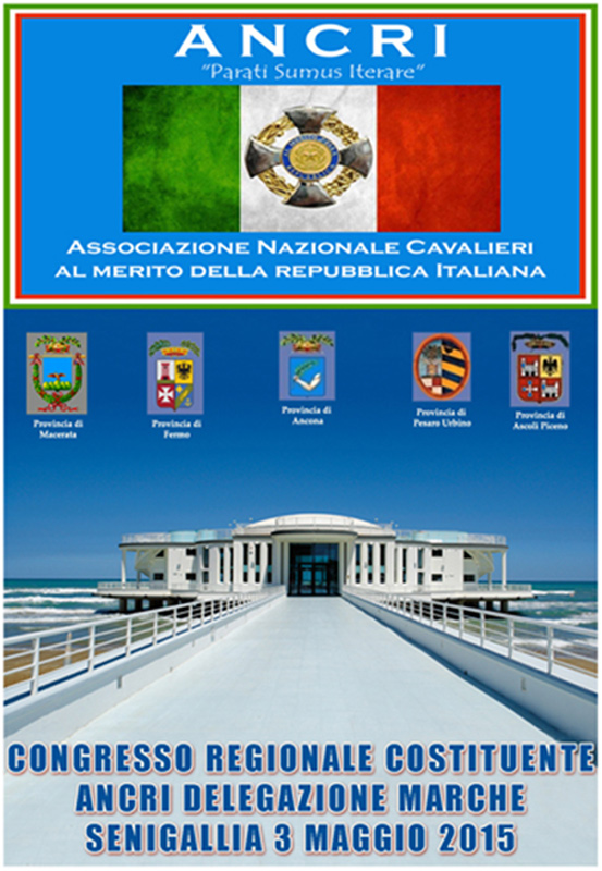 Il prossimo 3 maggio 2015 si terrà a Senigallia, presso l’hotel International, sul lungomare Mameli, il congresso regionale costituente della delegazione Marche dell’Ancri, l’Associazione Nazionale Cavalieri al Merito della Repubblica Italiana.