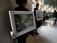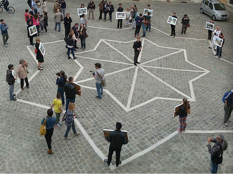 “L’azione” fotografica si è aperta con un gesto simbolico: quindici immagini sull’alluvione (dalla serie “Fango” di Giorgio Granatiero) sono state staccate temporaneamente dal muro della Biblioteca Antonelliana dove erano esposte. Le foto sono state portate in piazza da un gruppo di alluvionati per essere mostrate ai passanti. A loro il compito di “completare la performance” fotografando a loro volta i cavalletti con le foto in mano e anche reggendo le foto stesse.
