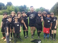 Poco tempo per rilassarsi: vengono montati alcuni gazebo, utilissimi per pubblico e atleti. In uno dei gazebo vi è l’area cibo e bevande. All’inizio il tempo è buono ed arriva un nutrito numero di persone. L’evento ha regolare inizio alle 15 con i bambini del mini rugby e l’allenatore Daniele Api.