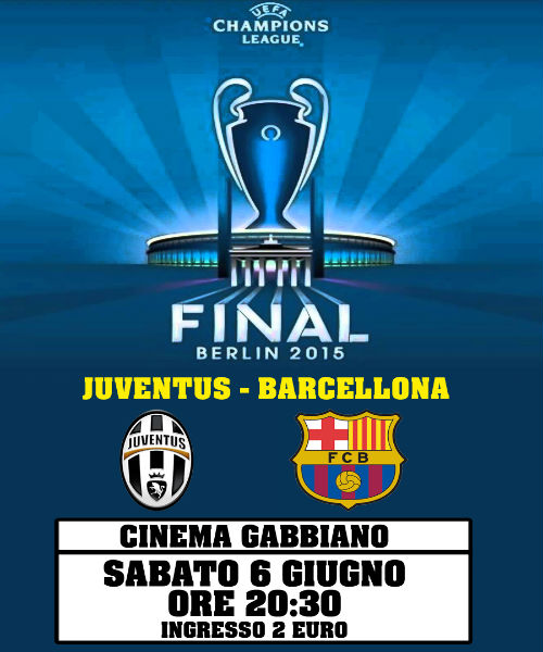 Il Gabbiano vola… sopra Berlino. Sabato 6 giugno il Cinema Gabbiano trasmetterà in diretta la finale di Champions League tra Juventus e Barcellona: per i bianconeri si tratta del ritorno in finale a 12 anni di distanza dall’ultima sfida per l’assegnazione dell’ambito trofeo, mentre gli azulgrana tornano a giocarsi la coppa dopo 4 anni.
