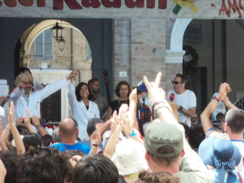 Con l’arrivo della Banda Osiris – reduce dalla splendida esibizione della serata precedente al Teatro La Fenice, del trombettista corinaldese Michele Samory e della band Franco Funky si è dato il via all’ultimo Periscope Song Project: sulle parole di “Sarà perché ti amo” tutto il pubblico si è avvicinato al palco e ai conduttori per l’ultimo saluto a Caterpillar AM.