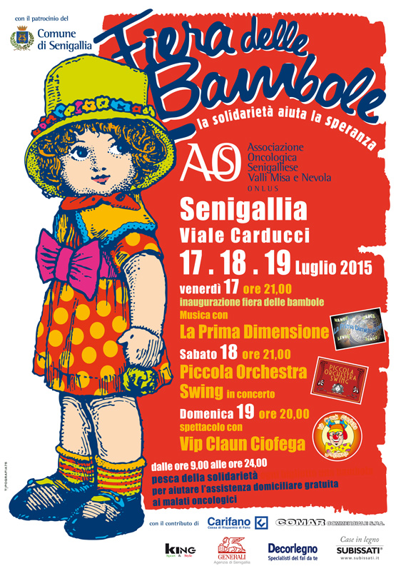 Torna la “fiera delle bambole“, in via Carducci, a Senigallia, dal 17 al 19 luglio. L’iniziativa è promossa dallAOS, associazione oncologica senigalliese, che, per il 17° anno consecutivo raccoglierà fondi attraverso la vendita di 1000 bambole realizzate dalle volontarie.