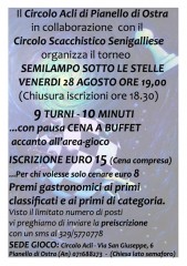Venerdì 28 agosto, il Circolo Scacchistico Senigalliese si sposterà a Pianello di Ostra, presso il Circolo Acli in via San Giuseppe 6, dove alle ore 19 inizierà il Torneo Semilampo sotto le Stelle.