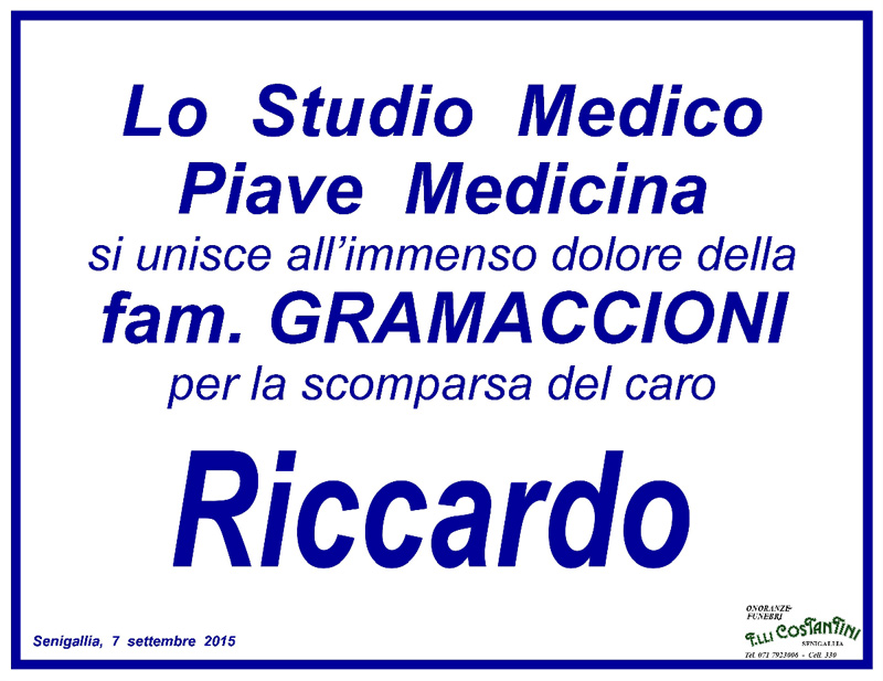 Lo studio medico Piave Medicina si unisce all’immenso dolore della fam. Gramaccioni per la scomparsa del caro Riccardo.