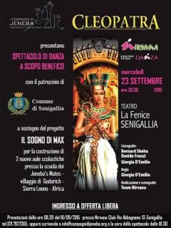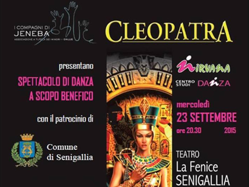 Mercoledì 23 settembre, alle 20.30, I Compagni di Jeneba presenteranno il bellissimo spettacolo Cleopatra in collaborazione con la scuola di danza Nirvana Club di Senigallia.