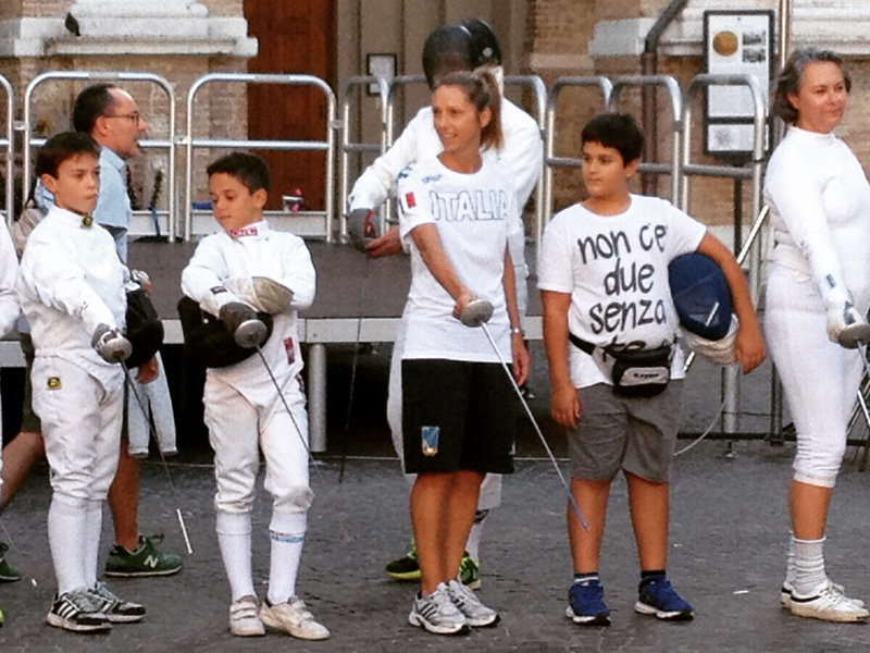 Gli schermidori di Senigallia in piazza Roma con Valentina Vezzali per il fencing mob 2015