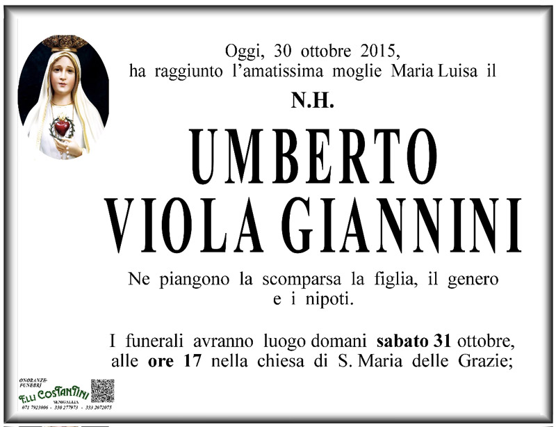 Venerdì 30 ottobre 2015 Umberto Viola Giannini ha raggiunto la sua amatissima moglie Maria Luisa. Ne piangono la scomparsa la figlia, il genero e i nipoti.