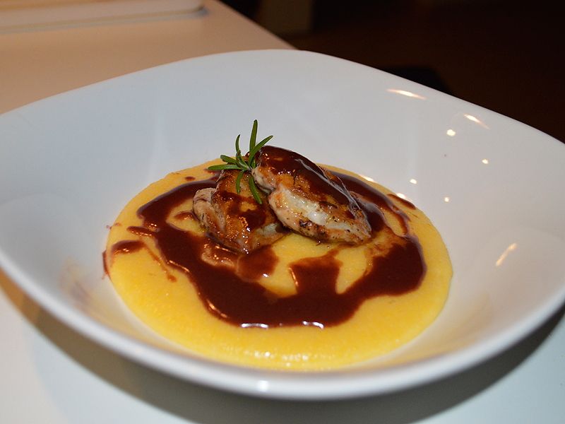 – Impiattare posizionando la polenta, i due petti e glassando con la salsa.
