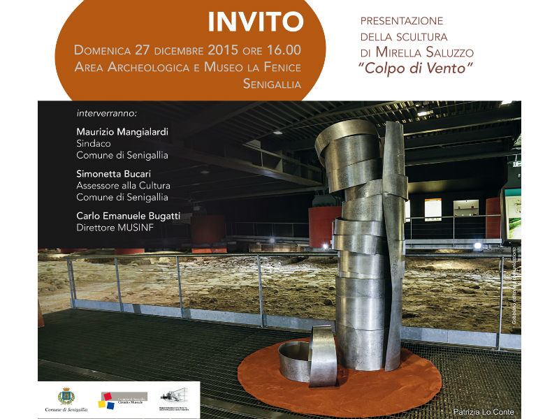 Sarà presentata domenica 27 dicembre, alle ore 16 nei pressi dell’area archeologica e del museo La Fenice, la scultura “Colpo di Vento”, dell’artista Mirella Saluzzo. Alla cerimonia saranno presenti il sindaco di Senigallia Maurizio Mangialardi, l’assessore alla Cultura Simonetta Bucari, il direttore del Musinf Carlo Emanuele Bugatti, e la stessa Saluzzo.