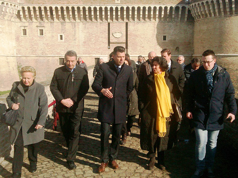 Si è svolta venerdì mattina, 15 gennaio, la visita del sottosegretario ai Beni e alle Attività culturali, Ilaria Borletti Buitoni. Dopo essere stata ricevuta dal sindaco Maurizio Mangialardi e dalla senatrice Silvana Amati nella residenza municipale, l’esponente del governo è stata accompagnata alla Rocca Roveresca per visitare la mostra sulla prima guerra mondiale “L’Europa in fiamme”, a Palazzo del Duca, per l’esposizione “L’obiettivo del cardinale” di sua eccellenza Prosper Grech. Infine al Musinf, dove il direttore Carlo Emanuele Bugatti le ha presentato le principali collezioni in possesso del museo. Presenti alla visita anche la soprintendente alle Belle arti Anna Imponente, il segretario regionale del ministero dei Beni culturali Giorgia Muratori e il direttore del Polo museale per le Marche Peter Aufreiter.