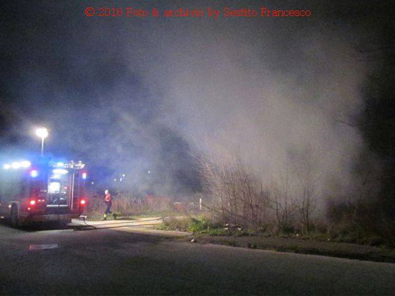 L'incendio in via Corvi alla Cesanella di Senigallia: vigili del fuoco sul posto