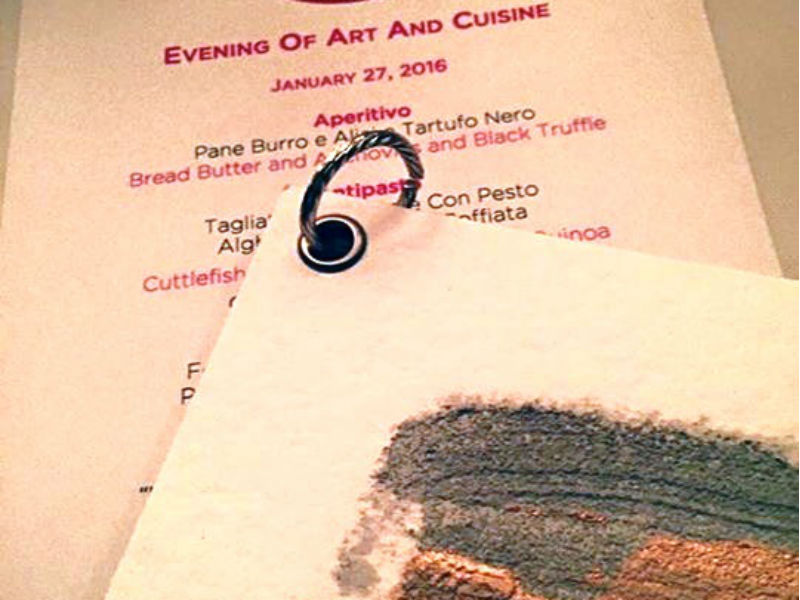 Inalterata l’originale e sempre apprezzata formula che sta facendo crescere la fama internazionale della coppia senigalliese, con lui impegnato a preparare piatti ispirati ai quadri di lei, esposti all’interno dello stesso ristornate. Le opere appartengono alla nuova collezione della Uliassi, per le quali l’artista ha utilizzato tecniche e materiali diversi, tra cui la sabbia del mare di Senigallia e le tele di cotone, lino e canapa degli anni cinquanta.