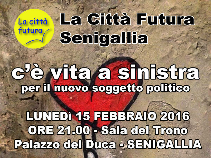 Lunedì 15 febbraio, alle ore 21.00, nella Sala del Trono di Palazzo del Duca a Senigallia: “C’è vita a sinistra – Per il nuovo soggetto politico”.