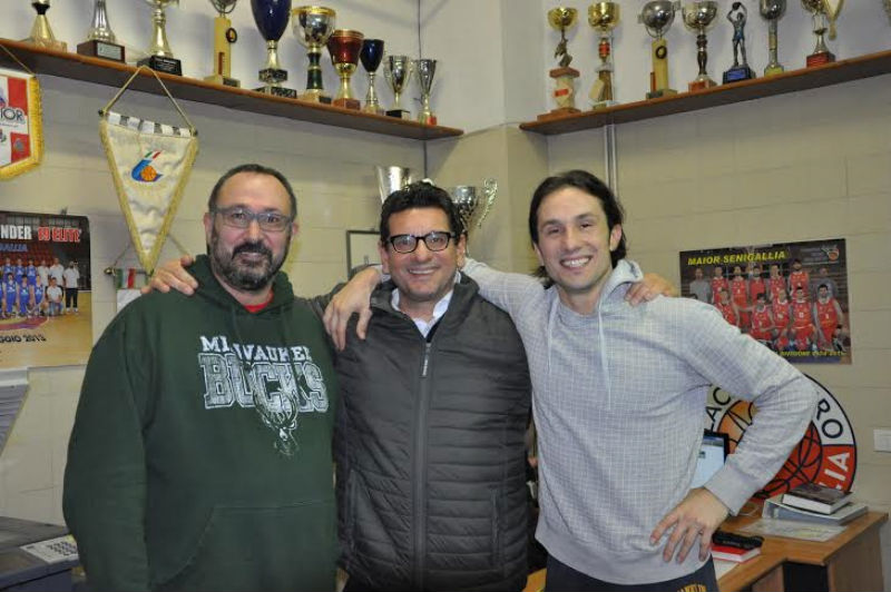 -Nella foto, l’allenatore del Bisceglie Fantozzi (al centro), ex play della nazionale, il segretario della Pallacanestro Senigallia Gherardo Massi (a sinistra) e l’attuale play biancorosso Marco Gnaccarini (a destra).