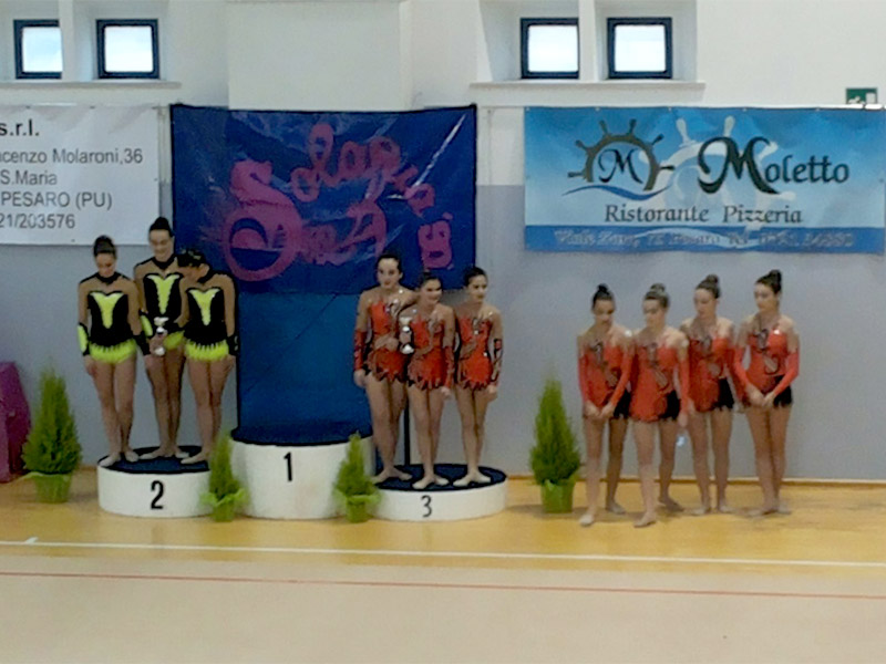 La gara era aperta alla 1° e 2° categoria Junior-Senior e agli esercizi a squadre. Molto nutrita, come al solito, la rappresentanza del gruppo di Senigallia, che ha visto la partecipazione di Valentina Baronciani, Martina Bartozzi e Camilla Antonietti nell’esercizio combinato cerchio e fune nella 1° categoria junior, Francesca Ruvio – ottima quarta ad un soffio dal podio – Alison Marzi e Rebecca Giuliani nell’esercizio combinato palla e fune nella 1° categoria senior e Sara Bruschi nell’esercizio con palla e clavette nella 2° categoria senior.