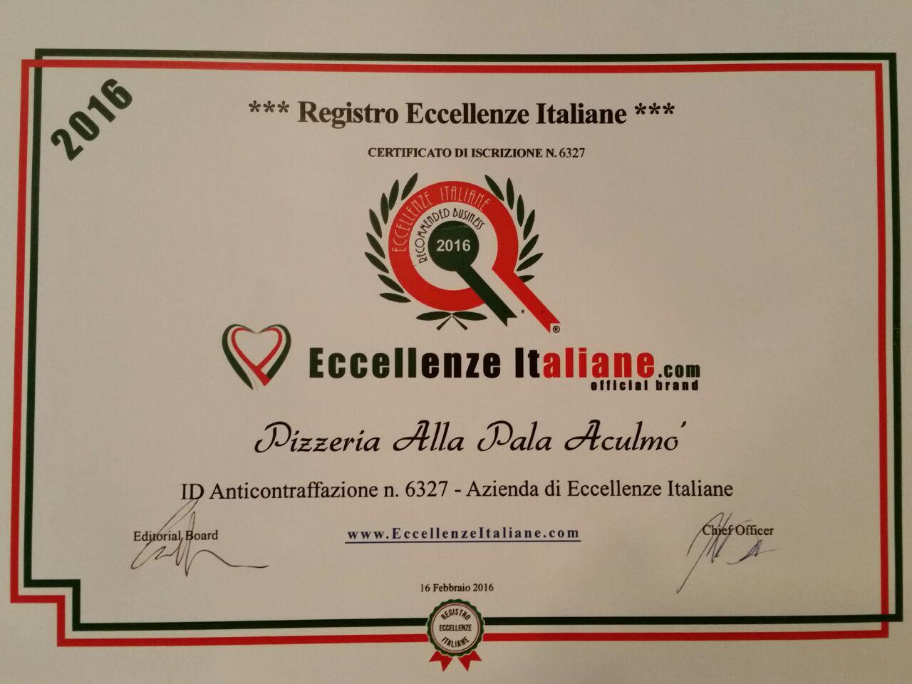 Il Registro Eccellenze Italiane ha infatti iscritto, al n° 6327, il nome di Aculmò: attestando il gusto del prodotto, la provenienza degli ingredienti e l’apprezzamento dei consumatori.