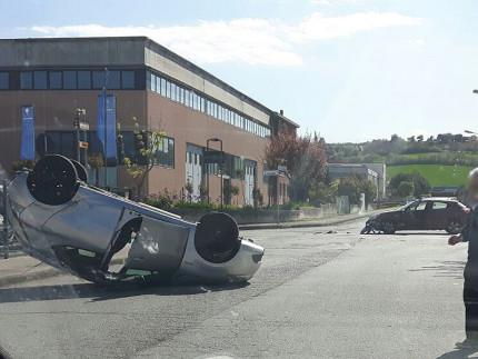 Dopo un lieve impatto all'incrocio, una delle due auto coinvolte è cappottata