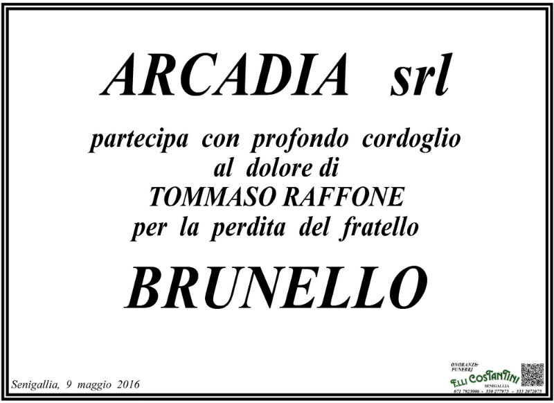 Arcadia srl partecipa con profondo cordoglio al dolore di Tommaso Raffone per la perdita del fratello Brunello.
