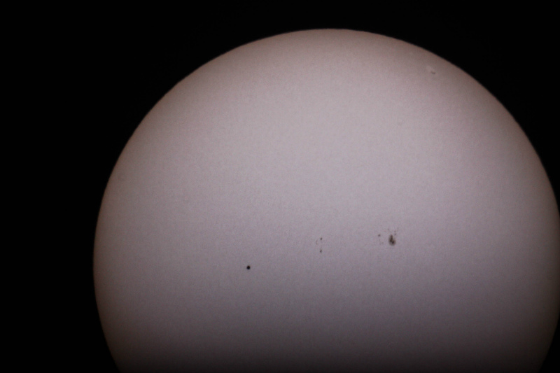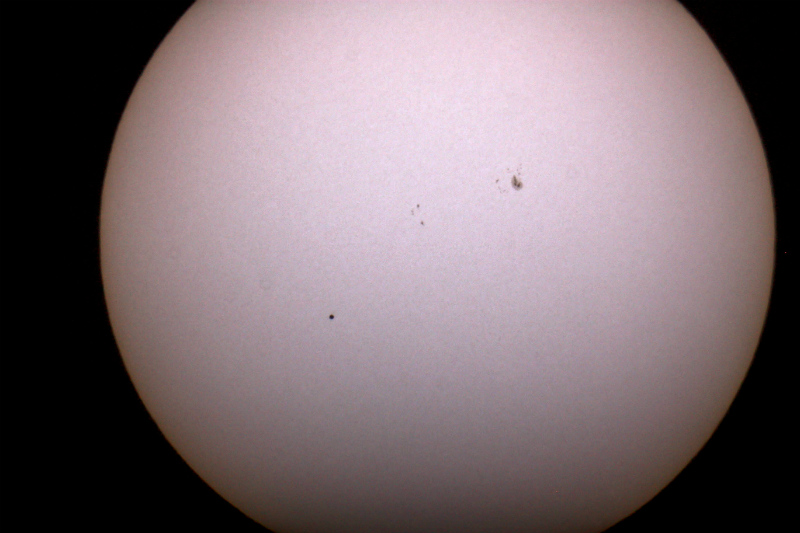 L’incontro Mercurio-Sole visto da Senigallia ed immortalato da Francesco Mandolini. Il pianeta ha attraversato il disco solare quasi diametralmente e il passaggio è durato complessivamente 7 ore e mezza. L’evento astronomico è iniziato alle 13.12 ora italiana: il passaggio si è concluso alle 20.42, quando il Sole in  era già tramontato.