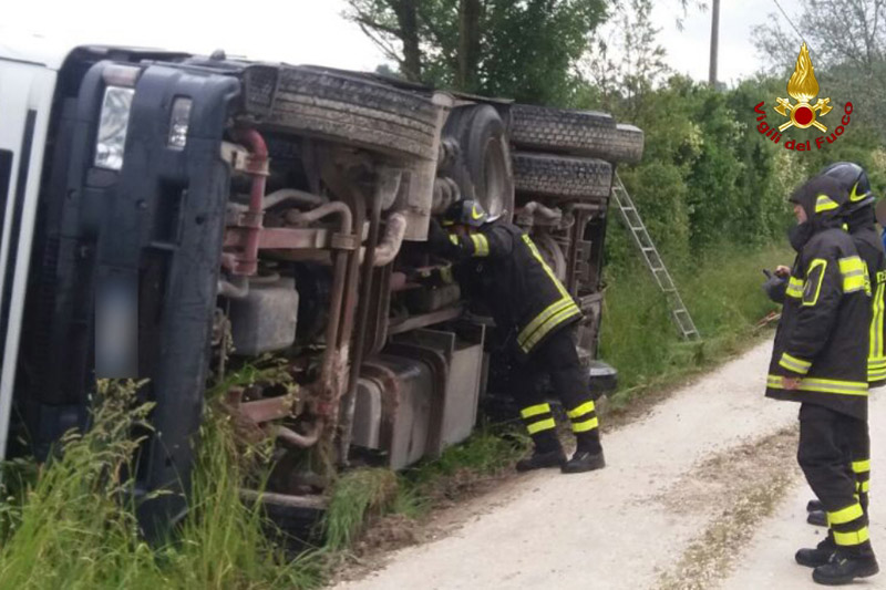 I vigili del fuoco del distaccamento di Senigallia sono intervenuti in via Molino Marazzana per un autocarro rovesciato