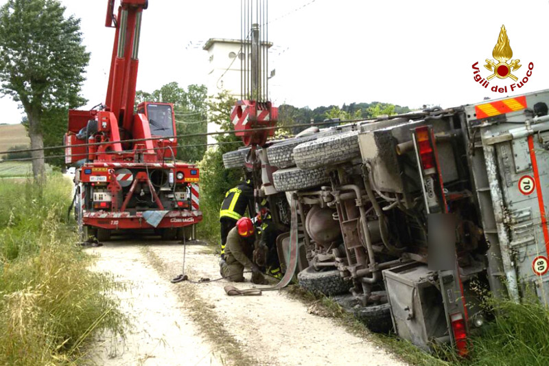 I vigili del fuoco del distaccamento di Senigallia sono intervenuti in via Molino Marazzana per un autocarro rovesciato