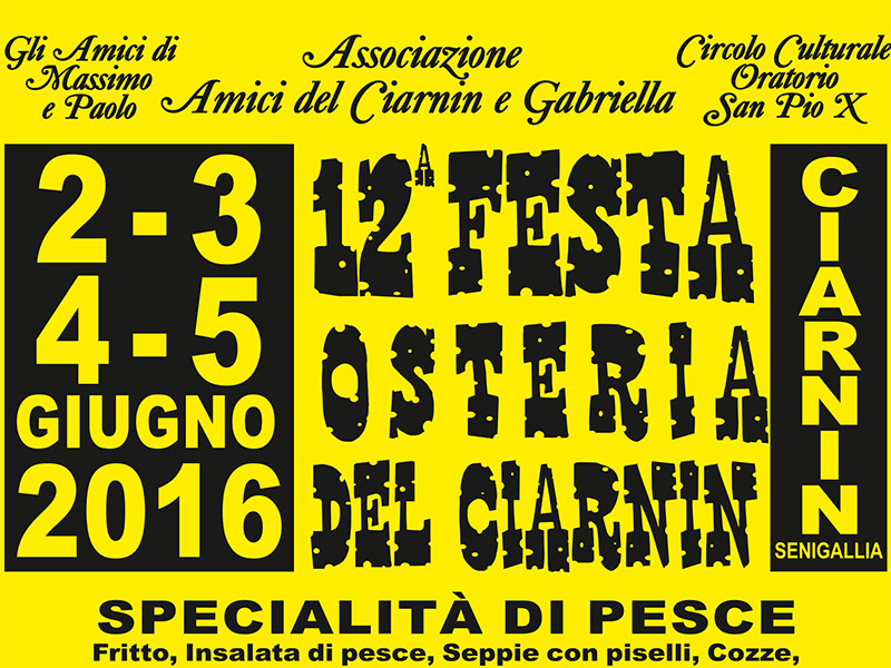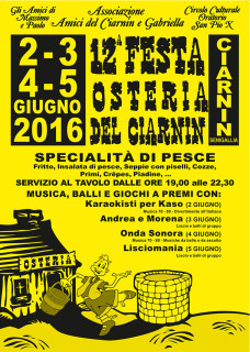 L’associazione Amici del Ciarnin e Gabriella insieme al Circolo Culturale Oratorio San Pio X, anche quest’anno organizzano la Festa dell’Osteria del Ciarnin ormai giunta alla 12esima edizione.