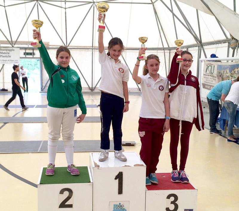 Nella categoria bambine di fioretto si classifica al terzo posto Giada Romagnoli (foto a sinistra), dopo l’ottavo posto ottenuto qualche settimana prima al campionato italiano sempre di fioretto.