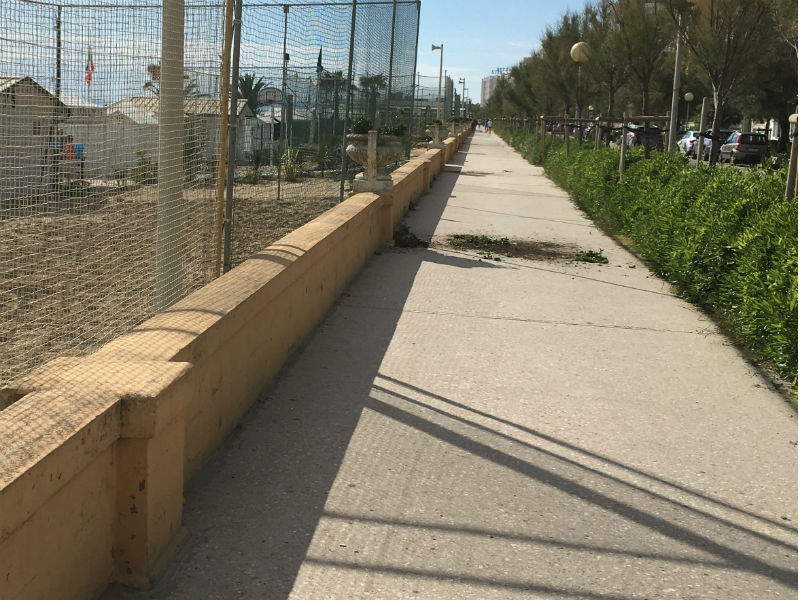 Come documentano queste foto del lungomare Alighieri diverse piantine sono state estirpate dalle fioriere posizionate su un lato del marciapiede, sporcando di conseguenza il marciapiede stesso, come immediatamente notato nelle prime ore del mattino dai titolari degli stabilimenti balneari e dei bar che andavano al lavoro.