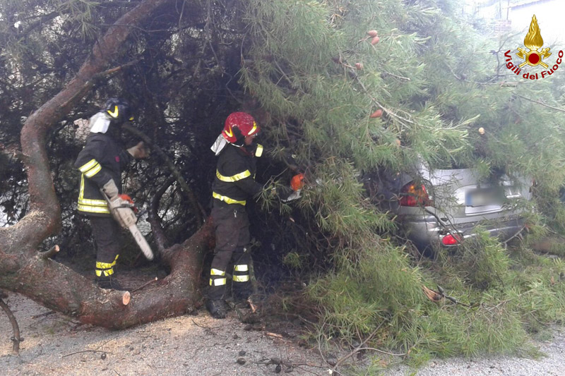 I vigili del fuoco del distaccamento di Arcevia sono intervenuti a Senigallia, in via Rodi, per un grosso albero caduto sulla strada