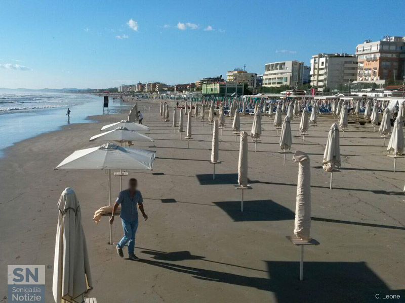 Gli stabilimenti balneari sulla spiaggia del lungomare Alighieri, a Senigallia, dopo la mareggiata del 16 giugno 2016