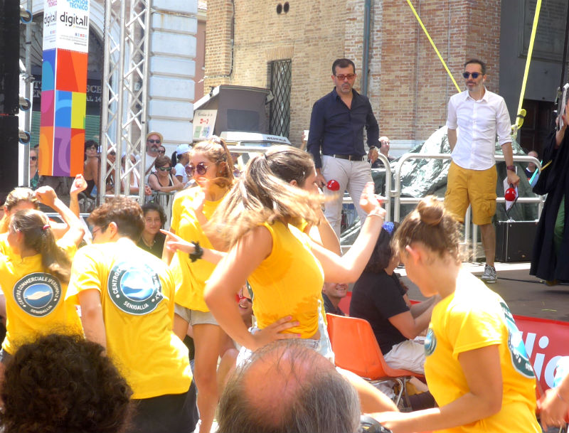 I giovani volontari di Festambiente Ragazzi a sotto il palco di Caterpillar AM