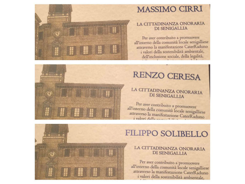 “Cittadinanza onoraria di Senigallia a Ceresa, Cirri e Solibello esalta tematiche promosse”