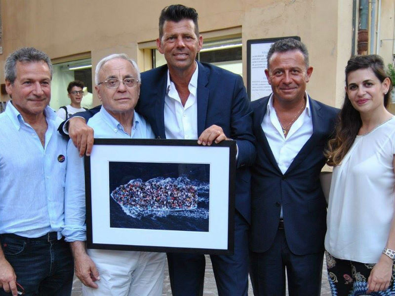 E, come sempre, il sindaco e la giunta comunale, rappresentata ieri dall’assessore Chantal Bomprezzi, insieme a scuole, imprenditori e singoli cittadini, hanno voluto dare il proprio contributo, aggiudicandosi per 5700 euro la foto aerea scattata da Massimo Sestini il 7 giugno 2014, ritraente un gommone carico di 227 migranti al largo delle coste libiche, trainato in salvo dalla fregata Bergamini della Marina Militare italiana.