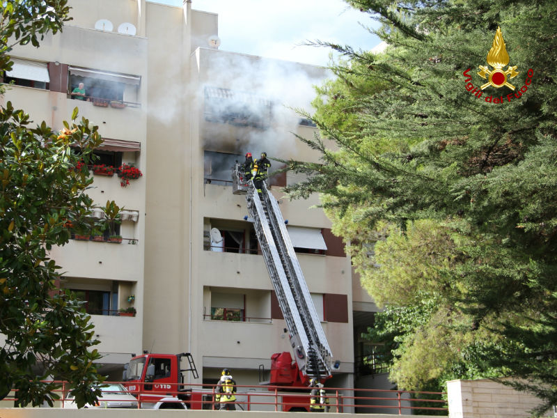 Visto che il balcone era situato al terzo piano l’incendio è stato attaccato dall’esterno con l’autoscala e l’uso di acqua.
