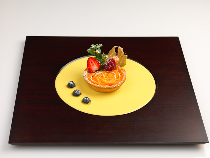 Crostatina tiepida di spinosini agli agrumi con crema morbida all’olio extra vergine di oliva