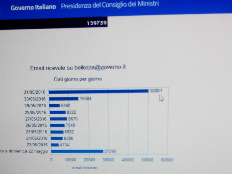 Lo screenshot del progetto e del dossier "bellezza@governo.it"