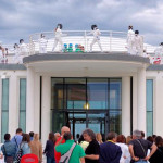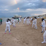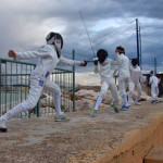 I giovani schermidori del club senigalliese schierati in parata, hanno raggiunto il porto della città dove si sono esibiti di fronte a un pubblico incuriosito e partecipe, per poi tornare alla Rotonda dov’era prevista la conclusione dell’evento.
